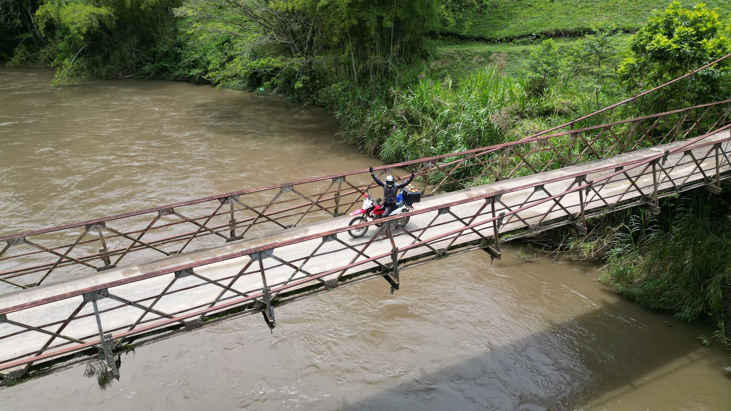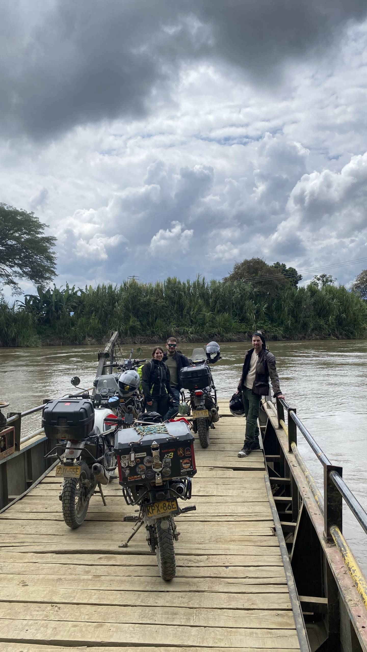 Am nächsten Morgen brechen wir wieder auf und fahren durch die hügelige Kaffeeregion, vorbei an duftenden Plantagen und über größtenteils asphaltierte Straßen. Und wenn das Wetter mitspielt, erwartet uns zum Abschluss des Tages noch ein kleines Abenteuer: eine Fährfahrt über den Fluss – einfach, aber aufregend und typisch kolumbianisch.